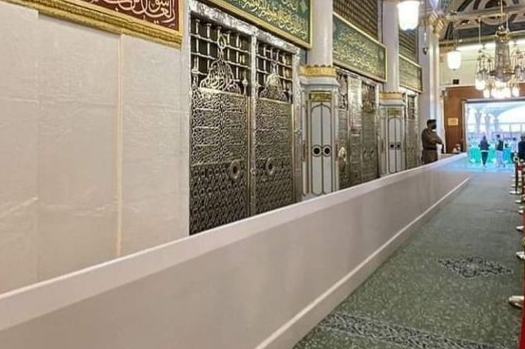 Di balik pagar itu terdapat dinding tebal, dan di balik dinding itu lagi barulah ruang makam sebenarnya. Tidak ada pintu masuk bagi siapa pun; bahkan pengurus Masjid Nabawi pun tidak memasukinya, kecuali untuk pemeriksaan teknis dengan penghormatan luar biasa.