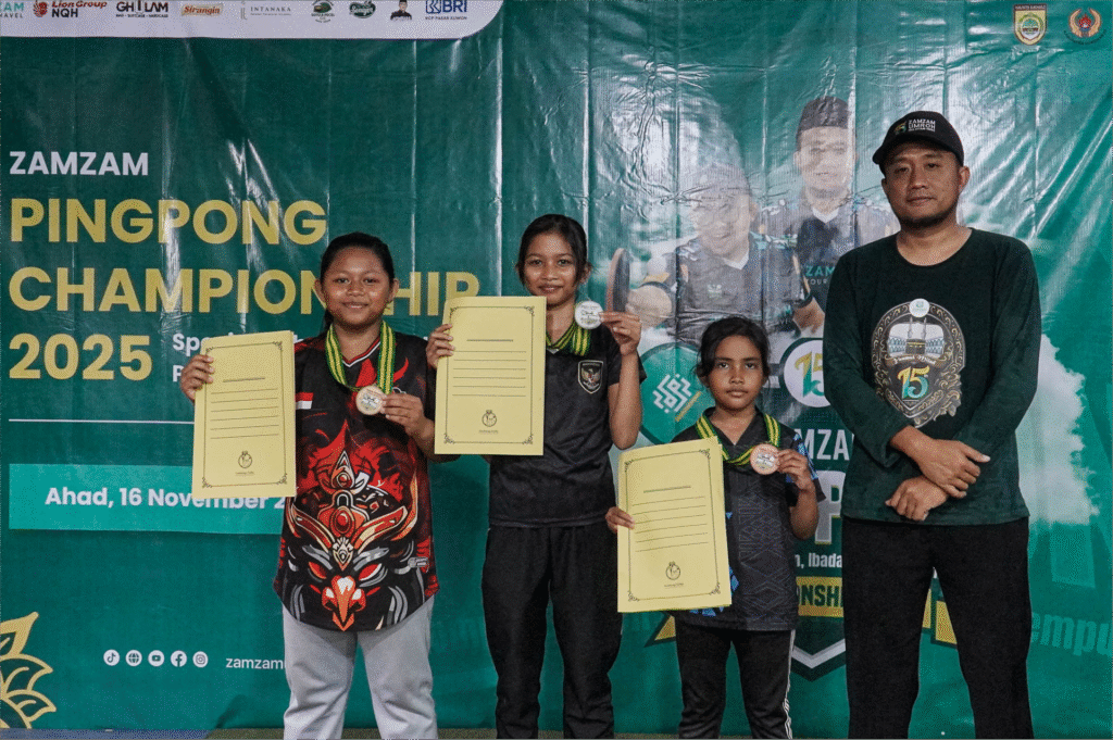 zamzamumroh.id – Zam Zam Ping Pong Championship 2025 resmi digelar pada Minggu (16/11). Acara berlangsung di area parkir PT Zam Zam Tour & Travel, Sukoharjo. Sebanyak 150 peserta ikut bertanding dalam turnamen milad ke-15 tersebut.